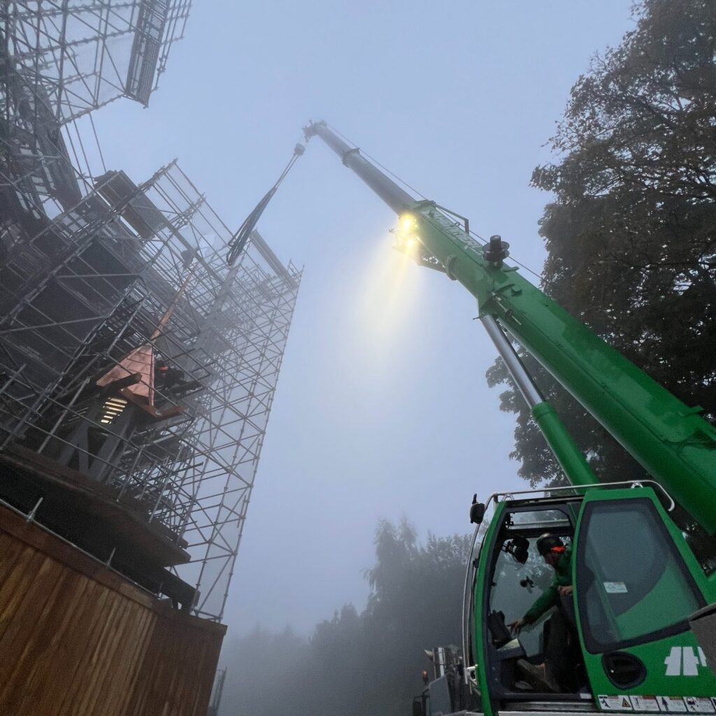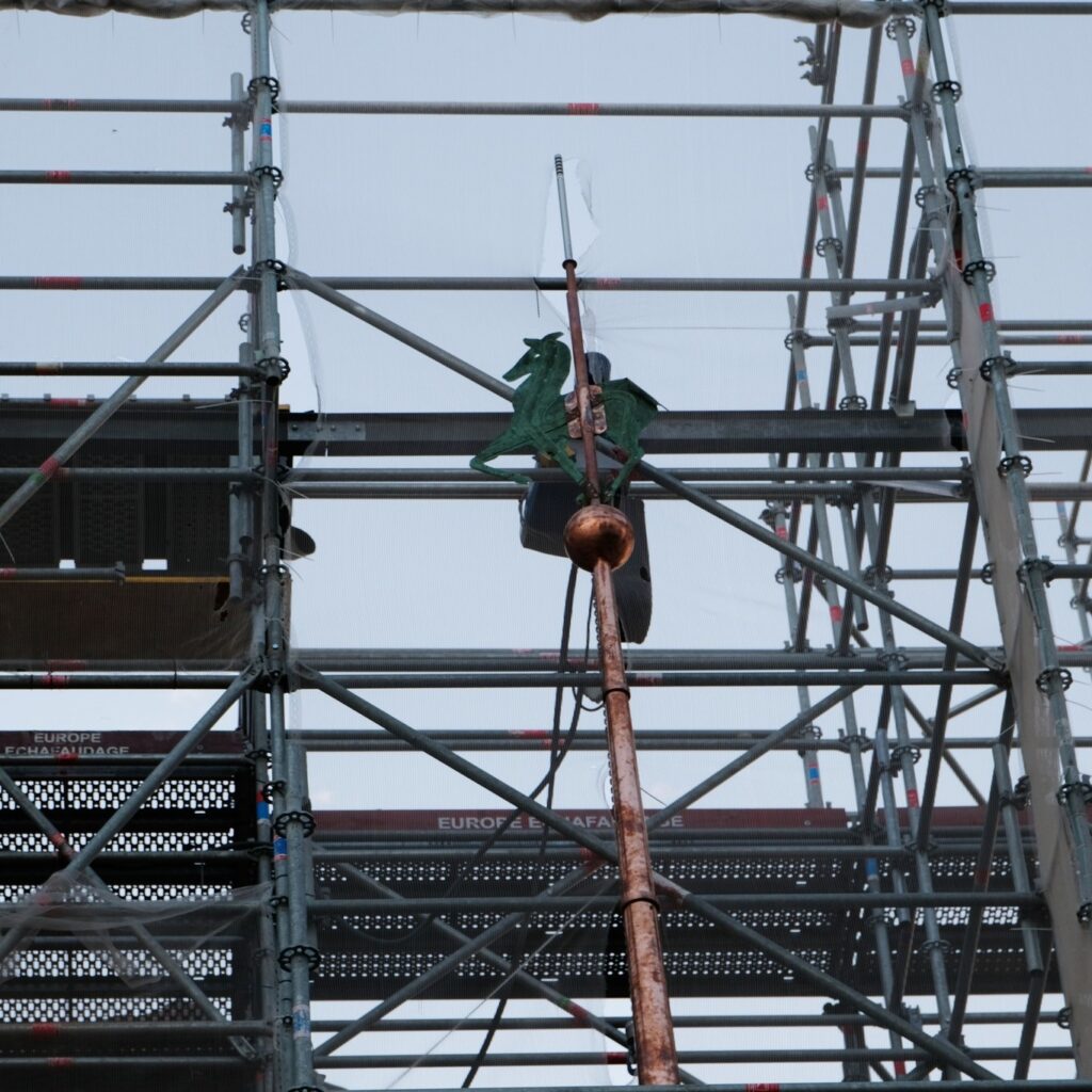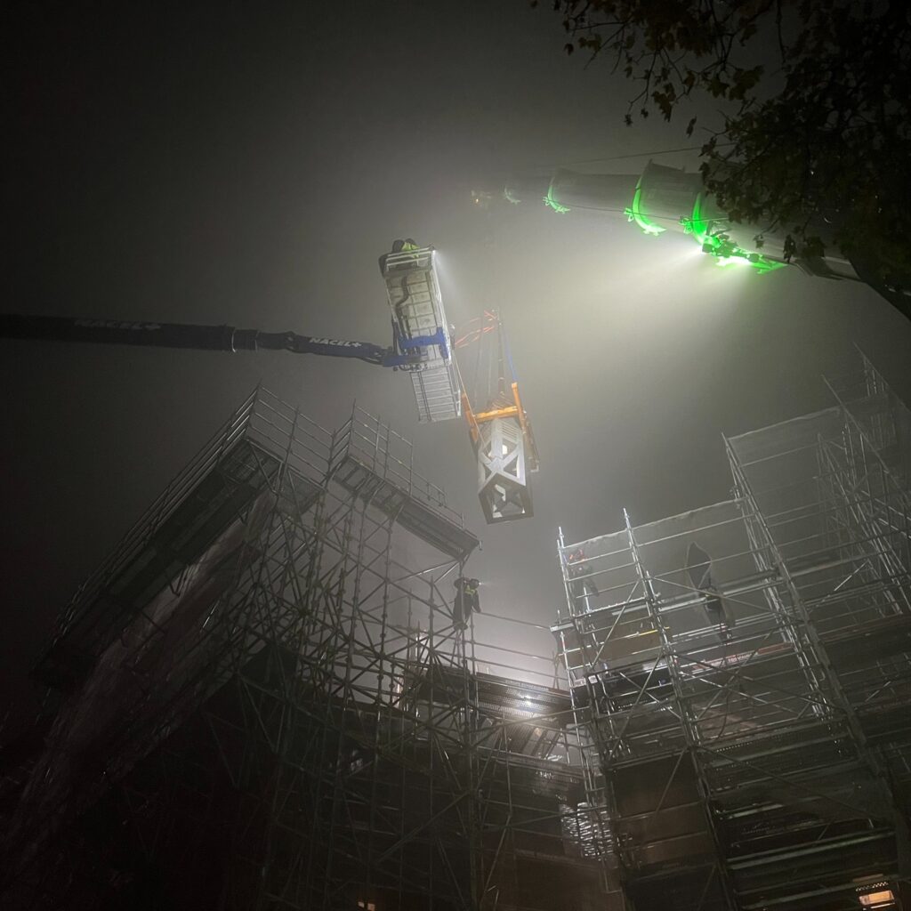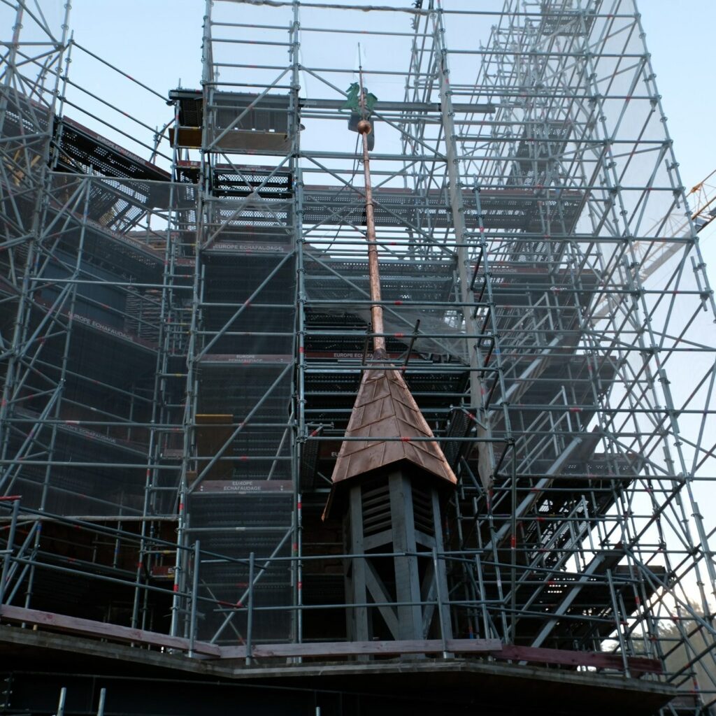 Le lanternon a été déposé avec une grue le mercredi 24 septembre au soir après la fermeture du monument et fixé au sommet de la toiture du Bastion en toile. Un moment symbolique et remplissant de fierté l’équipe du château et toutes les entreprises.